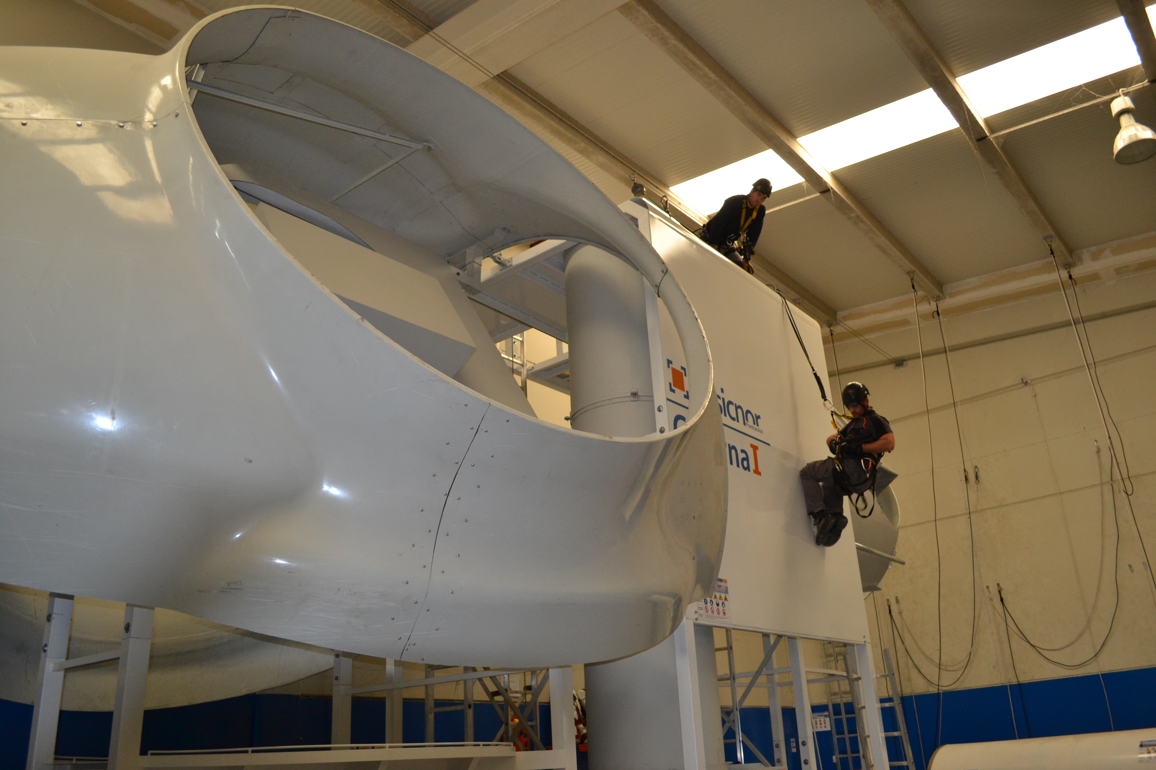 Simuladores de buje y nacelle interior y exterior, en ellos el alumno parcticará rescates laterales de nacelle y de buje con acceso exterior.
